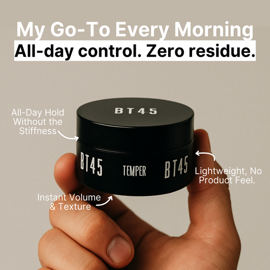 "I recently tried BT45's Temper, and I'm impressed. It thickens my hair and keeps everything in place without any noticeable product feel. As someone who's always on the go. Kudos to BT45 for making a reliable product that doesn't fall short on its promises!"
